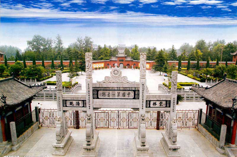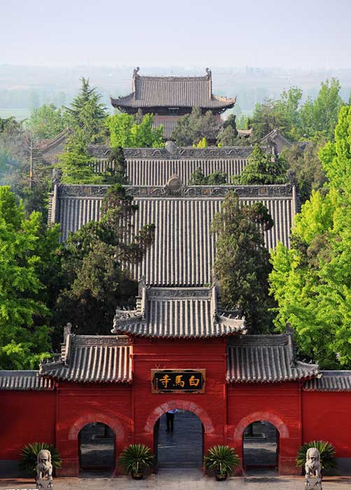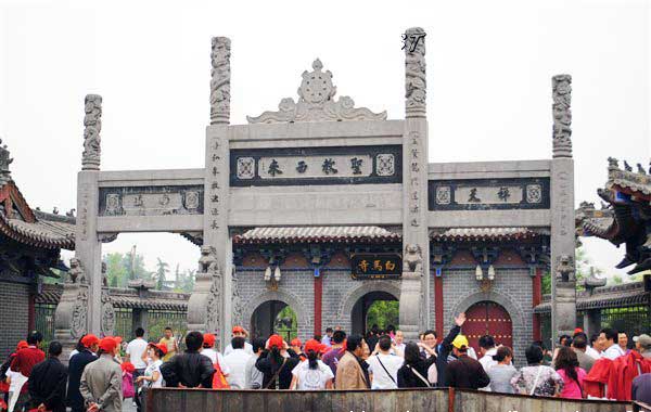 The White Horse Temple enjoys the reputation of the No.1 Ancient Temple of China. It lies on the south of Mangshan Mountain, and faces the Luohe River in the south. The construction of the temple started in the 11th year (68) during the Yongping reign of Emperor Mingdi in the Eastern Han Dynasty (25-220). The White Horse Temple has a history of over 1900 years. It is the first temple built since Buddhism spread to China in the Han Dynasty (206BC-220AD). According to historical records, Emperor Mingdi of the Eastern Han Dynasty dreamed of a golden man flying above the courtyard. After he woke up, the emperor sent Cai Yin and Qin Jing as envoys to western regions to invite Buddha and learn Buddhism. The two envoys underwent much hardship and met two eminent Indian dignitaries She Moteng and Zhu Falan on the way. Cai Yin and Qin Jing came back to Luoyang City with the two monks, and a white horse carrying the sutras. Emperor Mingdi ordered the construction of the temple to the north of the imperial road outside the Xiyong Gate of Luoyang City. The White Horse Temple, built after the style of Indian temples, was the place for She Moteng and Zhu Falan to translate Buddhist sutras and write sermons. In order to memorize the white horse for its carrying back of the sutras, the temple was named the White Horse Temple.