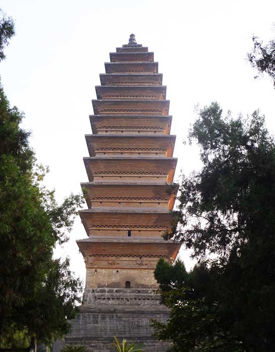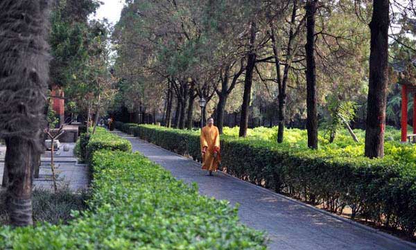Fifteen meters east of the temple, in the lush trees, stands the Qiyun Pagoda, also called the Pagoda of Sakyamuni’s Relics. The cubic shaped pagoda has 13 storeys, and is 25 meters high. Its construction started in the fifteenth year (1175) the Dading reign of the Jin Dynasty (1115-1234). It is one of the most ancient buildings preserved in Luoyang City. Outside the Temple Gate stand two green stone horses opposite to each other, which were made in the Song Dynasty (960-1279).